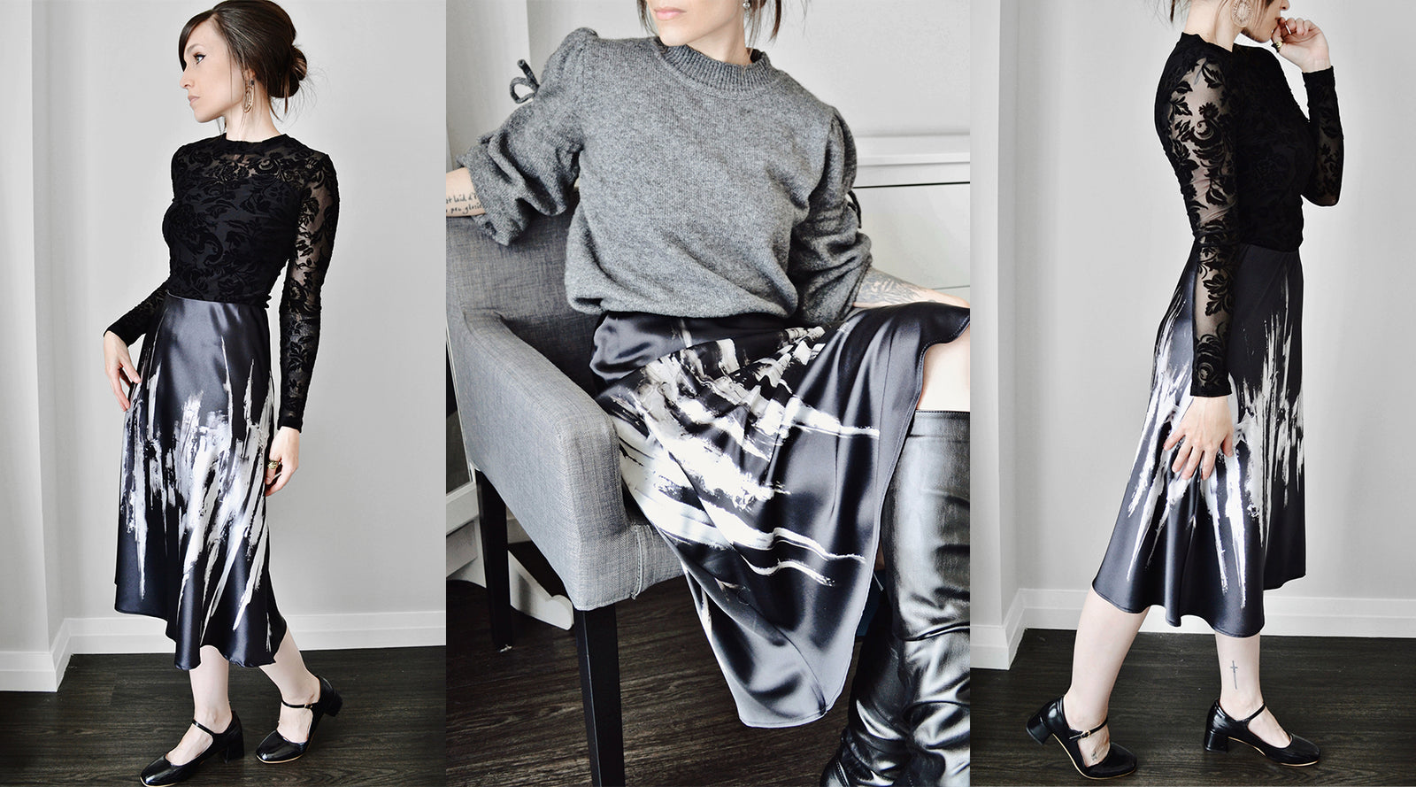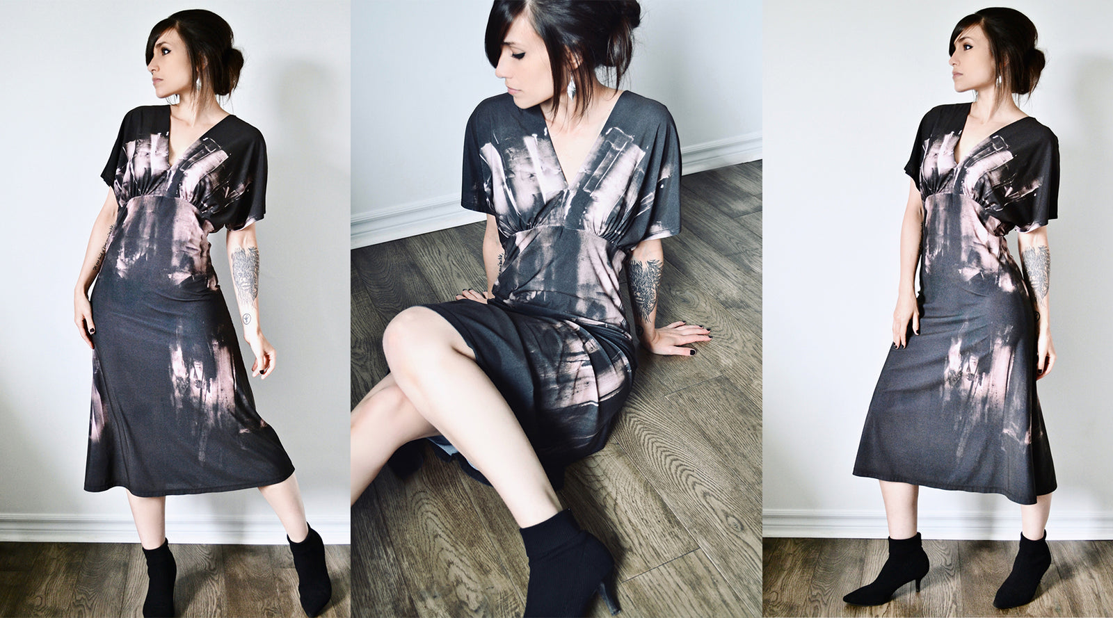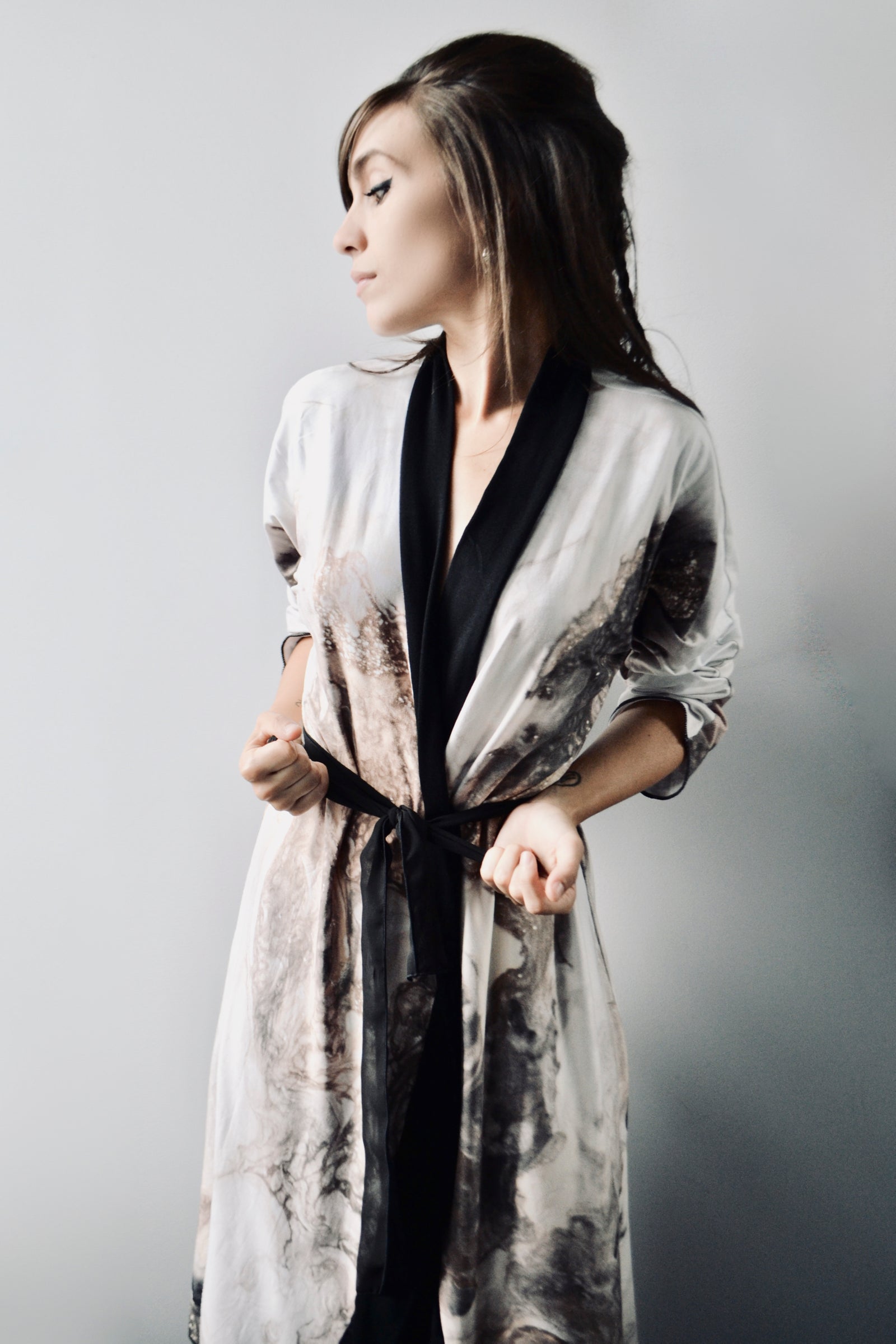 All garments are designed by artist, Sheena Kalmakova and created from her original artwork.